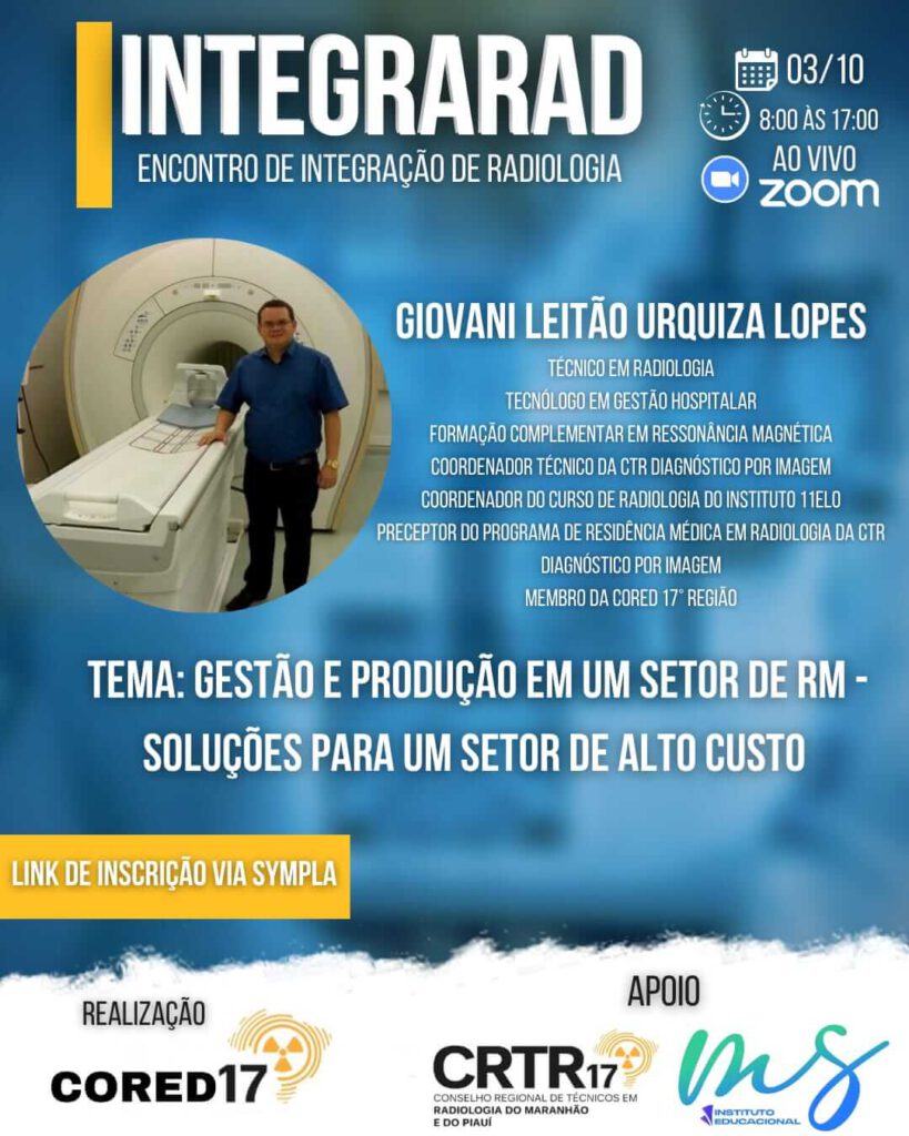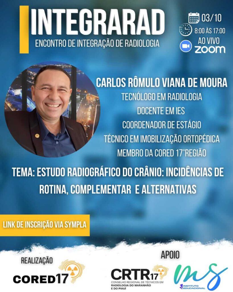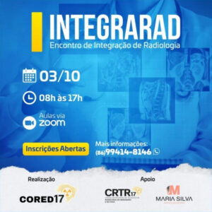 Prezados Profissionais das Técnicas Radiológicas do Conselho Regional da 17° Região é com grande estima que a CORED 17 deste Regional vos convida para mais um evento científico de integração ao Conhecimento e Netwoking da Categoria.
